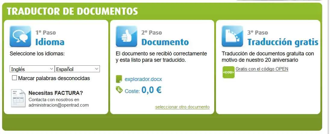 Par conséquent, dans le cas où nous aurions besoin de traduire un document texte de ce type, soit le nôtre, soit que nous avons reçu par courrier électronique, par exemple, nous n’aurons à accéder qu’à certaines de ces propositions, comme cela se produit par exemple avec Opentrad , un application de site Web pour traduire des fichiers DOC ou DOCX en plusieurs langues .