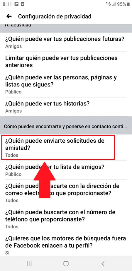 - Vous devez maintenant vous rendre dans la section «Comment peuvent-ils vous trouver et vous contacter», ici vous devez cliquer sur Qui peut vous envoyer des demandes d’amis?