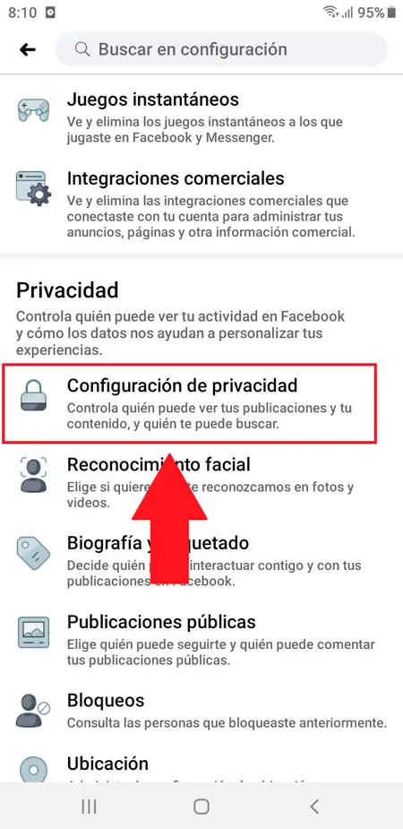 - Là, vous sélectionnerez l’option «Paramètres de confidentialité».