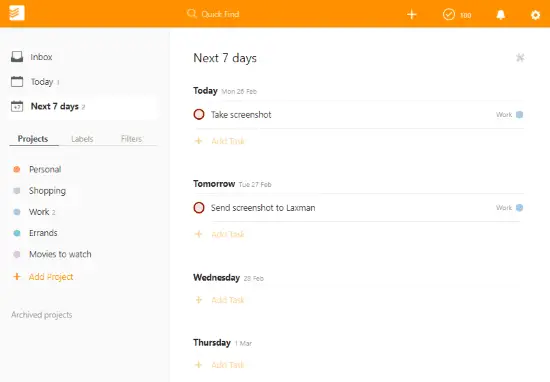 C’est une alternative simple à Wunderlist et il prend également en charge plusieurs plates-formes. Todoist vous permet d’ajouter des tâches à des projets, ce que Todoist appelle des listes. Il est impossible d’intégrer la liste des tâches avec Google Agenda et même de connecter notre compte Facebook à Todoist.