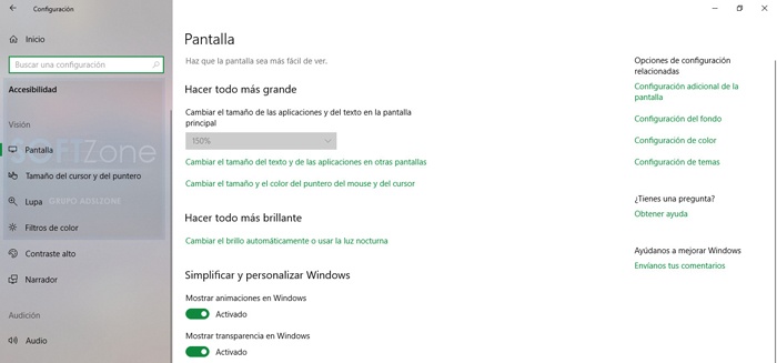 En changeant le troisième, dans ce qui fait référence à la section de l’ accessibilité du système , des améliorations ont été apportées au contrôle visuel pour obtenir une navigation plus facile et un accès plus rapide aux tâches courantes. De même, le Narrateur sera déjà activé en mode sans échec et nous pouvons désactiver les barres de défilement cachées dans la section » Paramètres / Accessibilité / Écran «.