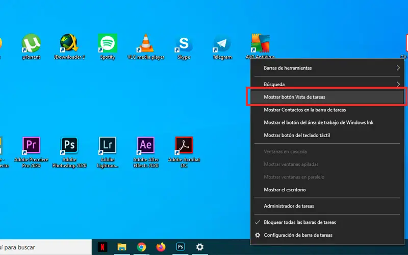 Le bouton multitâche ou vue des tâches est presque toujours situé à droite du champ de recherche dans la barre des tâches . S’il ne se trouve pas à cet endroit, il est probable que nous devrons l’activer manuellement.