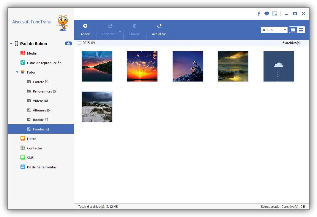 Dans la partie gauche de la fenêtre, nous avons un menu avec chacune des sections que nous pouvons gérer. De cette façon, nous pouvons voir «multimédia», «photos», «livres», «contacts», etc. Si nous cliquons sur chaque catégorie, nous verrons les fichiers sur notre iPhone ou iPad sur l’ordinateur.
