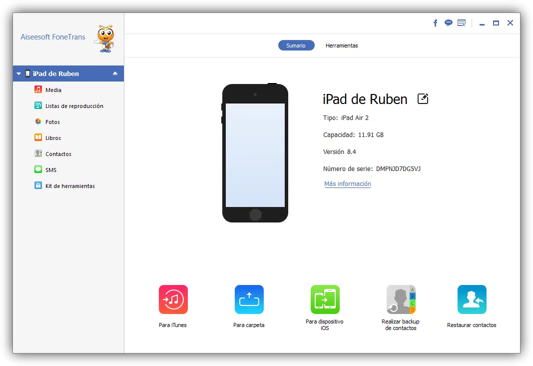 Comme on peut le voir, un outil complet pour gérer notre appareil iOS.