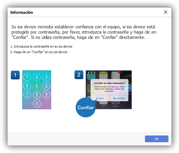 Une fois l’application téléchargée et installée sur le système, nous l’exécutons. La première chose que nous verrons sera la fenêtre principale du programme, où la première chose qu’il nous demandera est de connecter l’iPhone ou l’iPad à notre ordinateur.