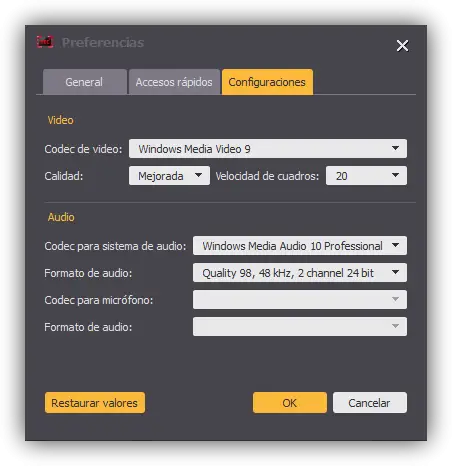Comme seul inconvénient, nous pouvons souligner qu’il ne nous permet d’enregistrer qu’en utilisant le codec Windows Media Player, WMV et WMA, il serait donc apprécié que, à l’avenir, le programme incorpore d’autres codecs d’enregistrement, audio et vidéo, à ces utilisateurs. pourraient mieux choisir celui qui répond le mieux à leurs besoins sans avoir à compter sur des programmes tiers pour le convertir.
