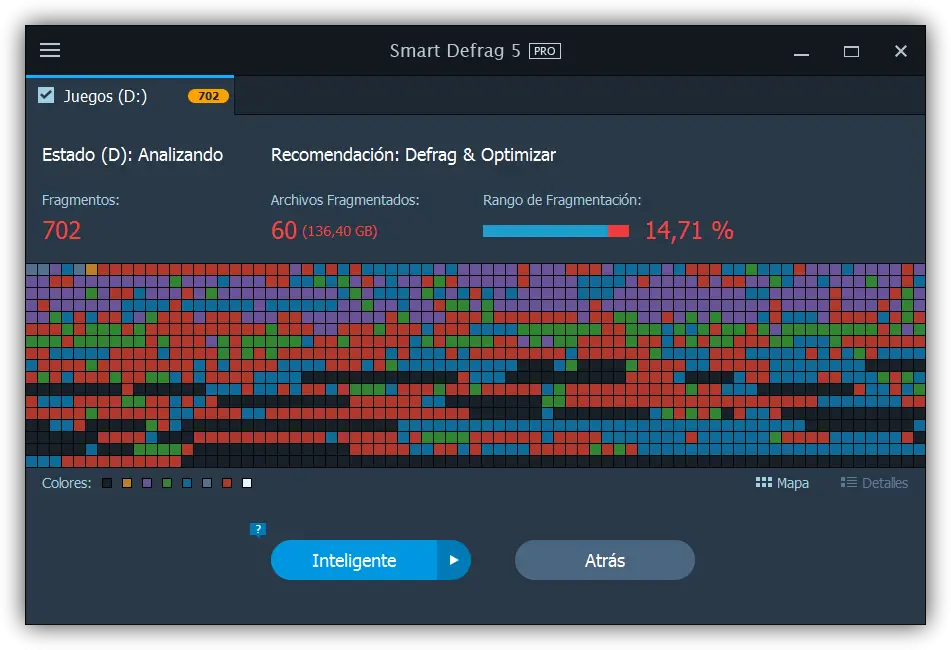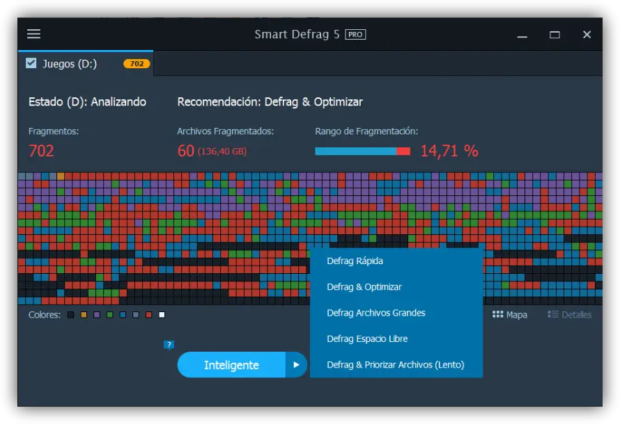 IObit Smart Defrag 5 est la dernière version de ce défragmenteur de disque qui, en plus d’avoir corrigé les problèmes détectés dans les versions précédentes, comprend un nouveau moteur plus rapide et plus efficace, un nouveau système de défragmentation automatique et de nouvelles options automatiques lorsqu’il s’agit d’effectuer La maintenance du PC, par exemple, effectue des tâches de manière intelligente lorsque le PC n’est pas utilisé et maintient l’application à jour automatiquement. De plus, cette nouvelle version améliore la maintenance des SSD grâce à la fonction «trim» (ou Trim) et est entièrement compatible avec le nouveau système d’exploitation de Microsoft, Windows 10.