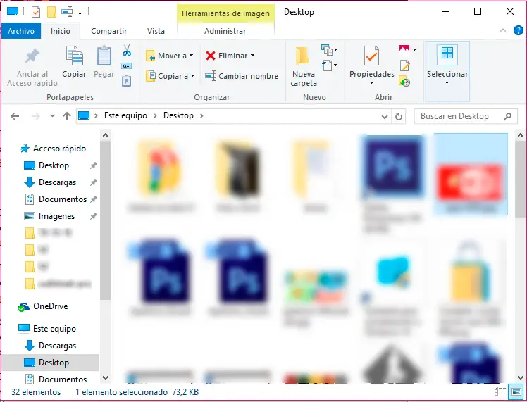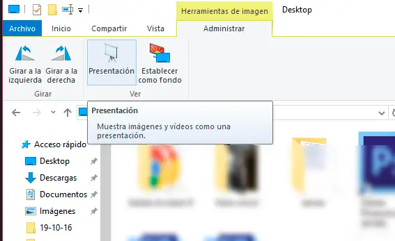 Une fois que nous sommes sur le bon chemin, nous sélectionnons la première image et une nouvelle option de menu apparaîtra automatiquement en haut de la fenêtre de l’explorateur de fichiers Windows juste au-dessus de Gérer avec le nom de Image Tools . Lorsque vous cliquez sur cette option, les outils pour faire pivoter les images, définir l’arrière-plan ou faire une présentation seront affichés.