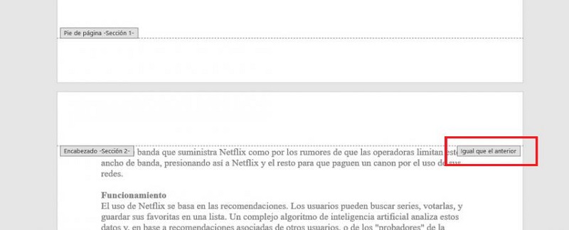 - Gardez à l’esprit que si la numérotation est placée dans le pied de page de la page et non dans les en-têtes, vous devez répéter cette étape, mais en cliquant sur le pied de page de la page. Nous entendons par là que les en-têtes et les pieds de page sont dissociés séparément.