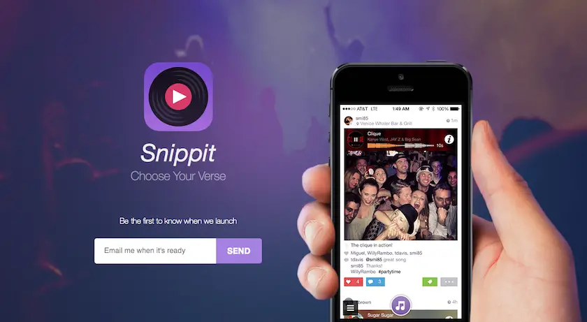 Joe Grano, co-fondateur et PDG de Snippit, a déclaré que l’idée lui était venue lors d’un voyage de retour à New York, où au lieu de vouloir partager une photo pour annoncer son arrivée sur les réseaux sociaux, il voulait partager une chanson de Jay. De cette façon, la photo pourrait ajouter plus d’éléments émotionnels qu’elle n’en aurait à elle seule.