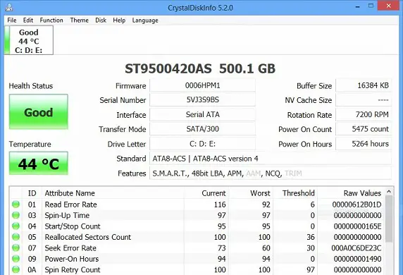 C’est un autre outil qui nous permet de connaître diverses sections et des informations importantes sur nos disques durs tels que son numéro de série , son fabricant , combien de fois il a été allumé, la température qu’il a à ce moment, ou le nombre d’ heures qu’il a été.