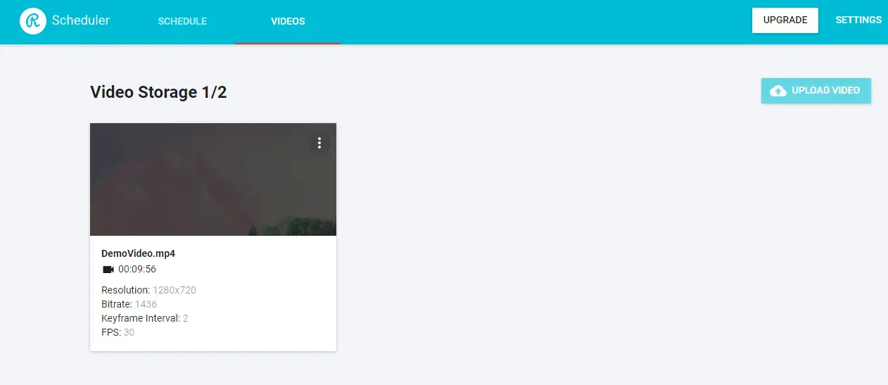Une fois que cela est fait, nous pouvons charger notre vidéo à partir de l’onglet Vidéos et la télécharger sur le service en ligne. Il est important de savoir que Scheduler Restream ne prend en charge que les vidéos au format MP4. Une fois cela fait, nous allons dans l’onglet calendrier ou calendrier pour créer un nouvel événement et indiquer la vidéo que nous voulons diffuser en streaming et la date et l’heure à laquelle nous voulons qu’elle soit transmise.
