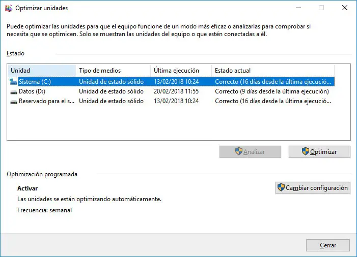 Une fois que cela est fait, cliquez sur le bouton Analyser et attendez que le processus s’exécute complètement. Dans la colonne État actuel, on nous dira s’il est nécessaire d’effectuer une action sur le disque dur externe, donc si tel est le cas, nous devons cliquer sur le bouton Optimiser.
