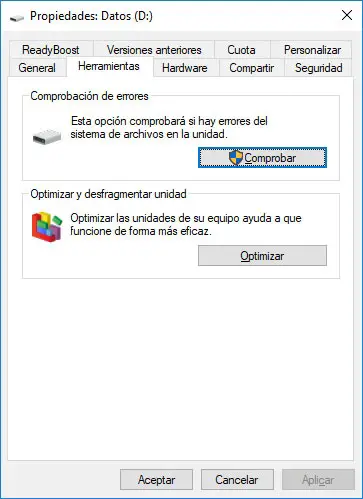 Étant donné que cette option est utile pour les disques durs externes conventionnels, pas pour les SSD, une autre chose que nous pouvons faire est de faire une vérification du disque de notre disque dur . Pour ce faire, nous pouvons à nouveau utiliser l’outil que Windows nous offre lui-même en cliquant avec le bouton droit sur le lecteur de notre disque dur externe dans l’explorateur de fichiers, puis en entrant Propriétés, en sélectionnant l’onglet Outils et en appuyant sur le bouton Vérifier dans la section Vérification des erreurs .