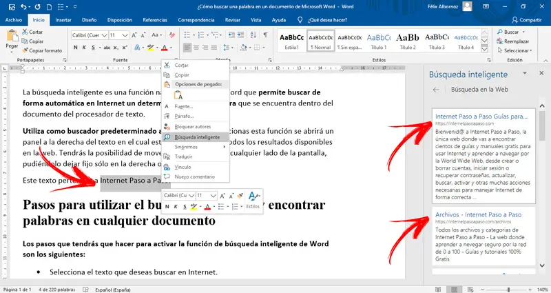 Smart Search est une fonction native de Microsoft Word qui vous permet de rechercher automatiquement sur Internet un certain texte ou mot trouvé dans le document de traitement de texte.