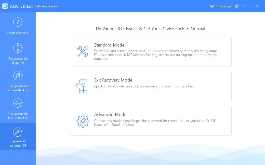 En plus de nous permettre de récupérer des fichiers supprimés , cette application nous permet également d’appliquer une série de correctifs pour résoudre les problèmes sous iOS, tous sans perdre aucune donnée de l’appareil.