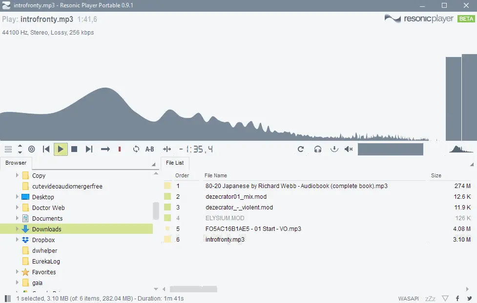Disons que nous pouvons traiter les formats les plus courants à l’époque comme wav , mp3 , mp4 , flac, ogg ou wma, entre autres; en plus de lire des fichiers et des modules midi, xm, s3m , mtm ou mod . Bien que Resonic ne fonctionne pas comme un lecteur vidéo, nous pouvons l’utiliser pour lire l’audio dans certains formats vidéo tels que mp4, wmv ou avi . De plus, nous pouvons personnaliser l’ interface commentée en fonction de l’utilisation que nous allons faire de l’application, comme le masquage de l’ explorateur de dossiers, ou donnez plus d’espace à la liste des fichiers disponibles.