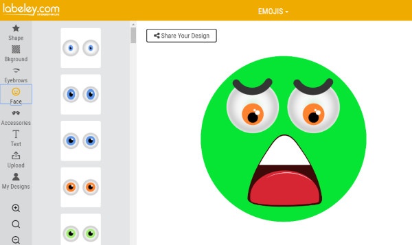 Labeley est un autre site Web gratuit pour créer des émoticônes qui propose, comme certains des sites déjà mentionnés ci-dessus, une toile où nous pouvons créer notre émoticône et un panneau à gauche à partir duquel nous pouvons choisir tous les éléments que nous voulons ajouter à notre création . Nous pouvons les trouver organisés par catégories et une fois terminé, il est possible de sauvegarder l’emoji au format png ou de le partager.
