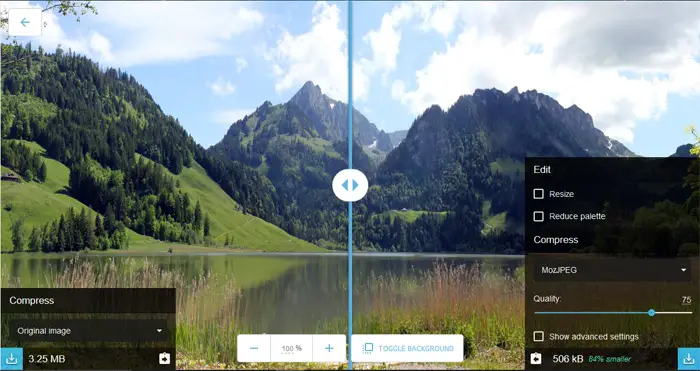 Gardez à l’esprit que l’application prend en charge, entre autres, les formats OptiPNG , MozJPG , PNG , JPG et WebP , tandis qu’un curseur sépare l’image dans sa version d’origine de celle déjà convertie. Cela nous donnera la possibilité de déplacer ce curseur et d’utiliser les opérations de zoom pour comparer la qualité réelle de l’entrée et celle de la sortie. Par conséquent, nous pouvons dire que son fonctionnement est extrêmement simple, car il suffit de sélectionner un fichier pour que l’ application démarre le processus de conversion et nous montre un aperçu de la sortie résultante.