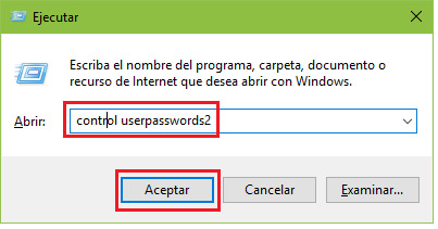 sur le clavier. - Dans la petite fenêtre qui apparaît, entrez la commande suivante sans guillemets: «control userpasswords2» .