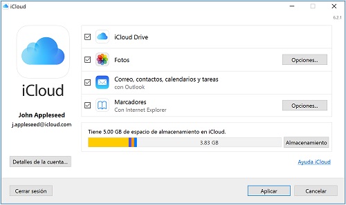 Lorsque nous exécutons l’application pour la première fois, nous devons accéder à notre compte Apple . Nous trouverons dans la fenêtre principale avec les éléments possibles que nous pouvons synchroniser avec notre ordinateur, puis nous nous assurons d’ avoir activé «iCloud Drive» et «Photos».