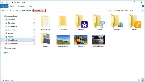 Lorsque nous aurons effectué l’étape précédente, iCloud sera configuré et prêt à télécharger nos photos en un seul coup sur l’ordinateur Windows. Dans l’explorateur Windows, nous allons aller à «Cet ordinateur», dans la section des appareils et des unités, nous trouverons «Photos dans iCloud» , là nous cliquons et entrons.