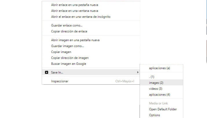 De cette façon, lorsque nous allons télécharger un fichier sur Internet, lorsque nous cliquons sur son lien de téléchargement avec le bouton droit de la souris, les différents dossiers où nous pouvons télécharger ledit fichier seront affichés. Save In est idéal pour télécharger des fichiers, des images, des vidéos ou des applications et garder tout organisé.