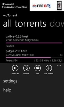 Téléchargez et gérez les torrents depuis Windows Phone 8 avec wpTorrent