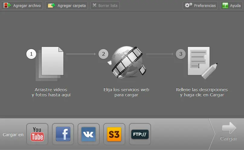 Et enfin, lorsque la connexion avec les plates-formes sélectionnées aura été effectuée sans heurts, nous devrons cliquer sur le bouton «Charger» en bas à droite. Enfin, nous dirons que nous pouvons faire cela avec plusieurs vidéos simultanément, nous n’aurons plus qu’à les faire glisser toutes en même temps dans la fenêtre du programme.