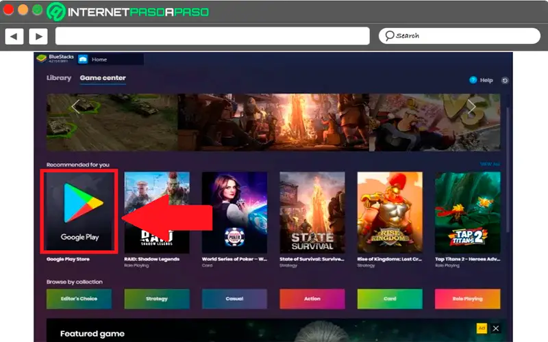 - Une fois que Bluestacks est téléchargé sur votre ordinateur , la prochaine chose à faire est de trouver le fichier, de l’exécuter et de l’ouvrir . Lorsque vous y accédez, vous verrez qu’il ressemble beaucoup à l’interface du smartphone. Dans l’onglet principal du système d’exploitation mobile, vous devez vous assurer qu’il se trouve dans l’onglet «Game Center» et y accéder au «Google Play Store».