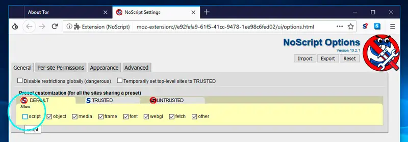 Il existe une troisième façon de désactiver JavaScript et c’est via une procédure manuelle directement dans Tor.