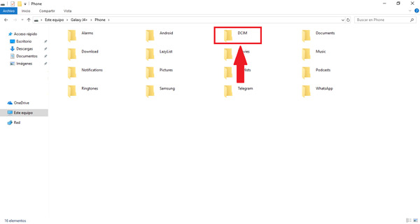 - Une fois que vous entrez dans l’ordinateur, vous devez rechercher un dossier appelé «DCIM» vous y trouverez tous les dossiers de votre galerie.