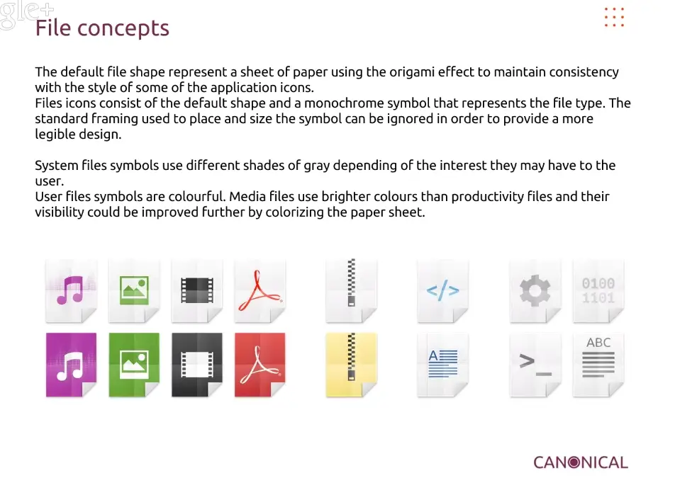 Les icônes des différents types de fichiers sont également modifiées, comme suit: