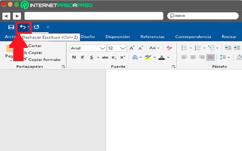 • Si vous faites partie des utilisateurs qui préfèrent utiliser la souris au lieu de votre clavier, il ne vous reste plus qu’à vous rendre dans la partie supérieure gauche de votre écran dans Word et à sélectionner la flèche qui fait face au côté gauche, cela vous permettra d’ annuler le Dernière action que vous avez effectuée sur le texte . Selon l’emplacement de l’erreur, vous pouvez la sélectionner plusieurs fois jusqu’à ce que vous l’atteigniez.