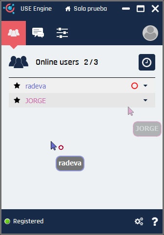 Pour chaque spectateur, un pointeur de souris différent sera vu avec le nom de l’utilisateur , nous avons la possibilité d’attribuer le rôle de super utilisateur à certains des spectateurs afin qu’ils puissent contrôler complètement notre ordinateur ou leur donner moins de privilèges pour être de simples spectateurs. Vous pouvez télécharger gratuitement le client USE Together à partir du site Web du service à ce lien.