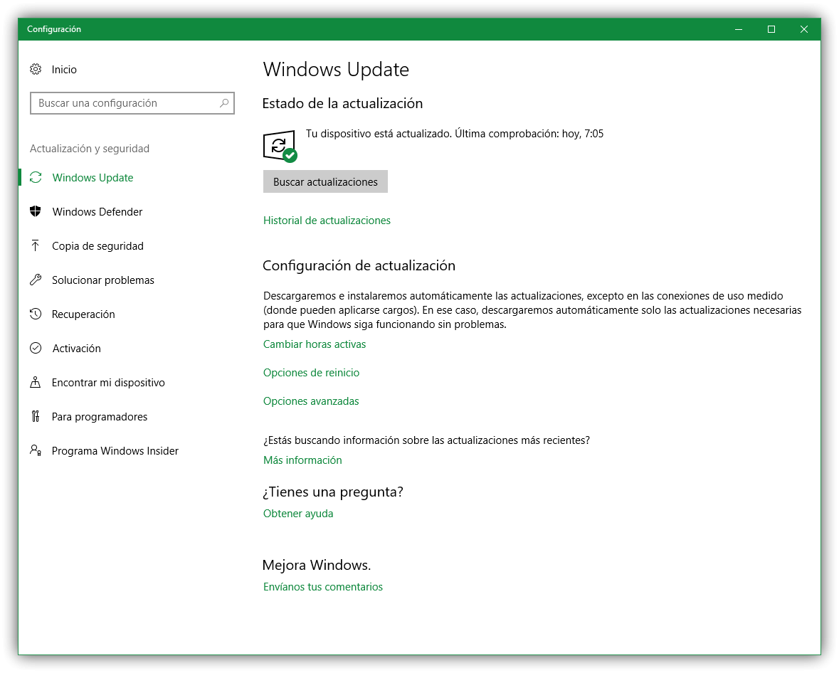 Nous verrons automatiquement une fenêtre comme la suivante, où nous verrons si notre Windows est à jour et quand de nouvelles mises à jour ont été recherchées pour la dernière fois.