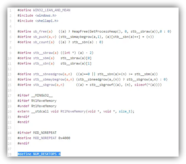 Cet outil nous permet de travailler avec 4 bureaux virtuels par défaut, bien qu’il soit possible d’en ajouter d’autres si l’on télécharge le code source, changeons la variable » #define NUM_DESKTOPS 4 » et la recompilons.
