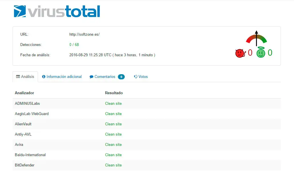 VirusTotal offre la possibilité d’ analyser les fichiers et les URL suspects, facilitant une détection rapide de tout virus, ver, cheval de Troie et tous les types de logiciels malveillants qu’ils contiennent. De cette façon, si lors de la visite d’un site ou du téléchargement d’un fichier, nous avons des soupçons sur son éventuelle infection ou nous voulons simplement nous assurer qu’ils ne contiennent aucun type de malware à l’intérieur, nous pouvons toujours utiliser cet outil en ligne.