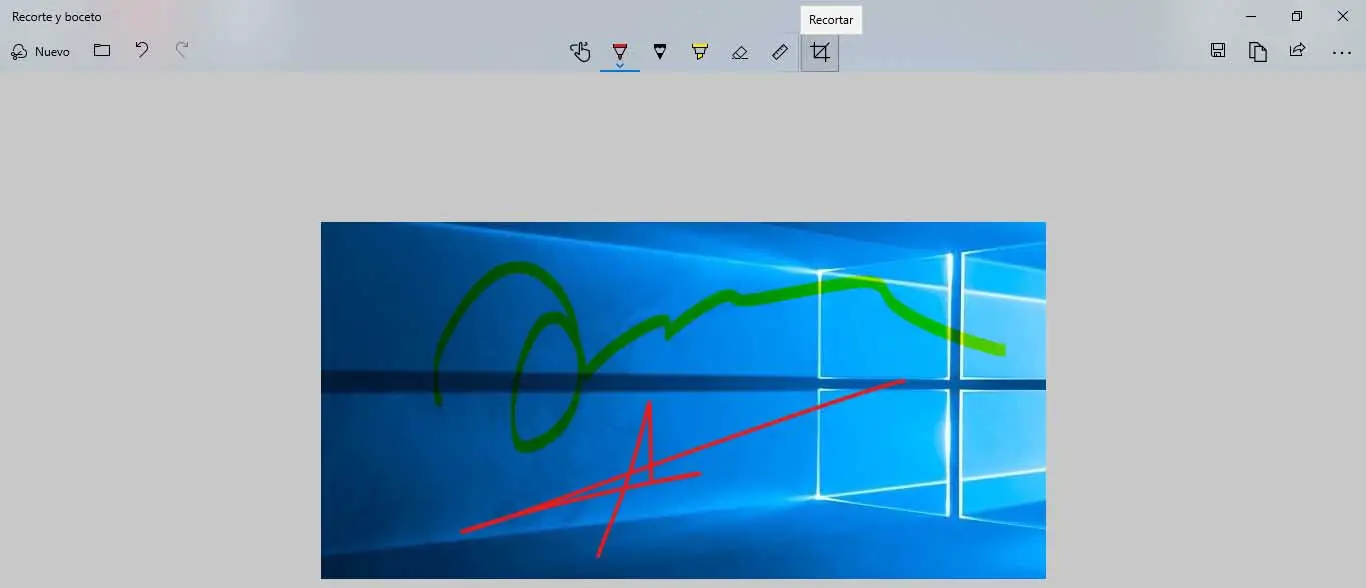 Une fois ouvert, nous verrons que son interface n’a rien à voir avec l’interface de Clipping. Le nouvel outil pour prendre des captures d’écran dans la mise à jour de Windows 10 octobre 2018 dispose d’une barre supérieure dans laquelle nous trouvons plusieurs options de menu et outils pour personnaliser et modifier les captures d’écran.