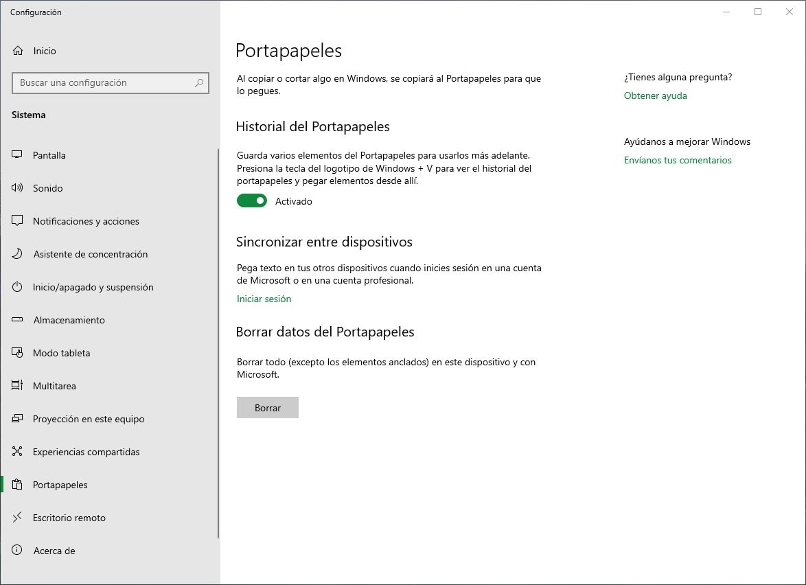 Une fois activé, nous pouvons commencer à utiliser cet historique . Bien sûr, avant cela, nous devons activer la fonction de synchronisation pour pouvoir synchroniser notre presse-papiers avec tous les ordinateurs Windows 10 que nous avons synchronisés avec notre compte Microsoft.