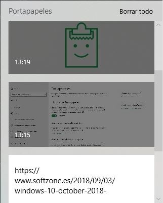 Si nous copions quelque chose à partir de Windows 10, il apparaîtra automatiquement dans cette fenêtre, que ce soit des captures d’écran, du texte, des liens … peu importe.
