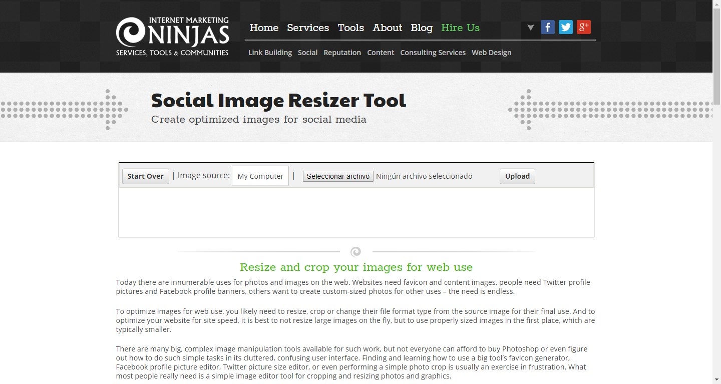 L’outil de redimensionnement d’image sociale est l’un des éditeurs d’images gratuits qui ne peuvent manquer de notre répertoire. Cette application nous permettra d’ajuster, redimensionner et couper n’importe quelle image afin que nous puissions l’ajuster pour l’utiliser dans n’importe quel réseau social, à la fois comme image d’utilisateur et dans la section «en-tête», par exemple, sur YouTube, Facebook ou Twitter. Son interface simple nous permet d’éditer les images en un instant, et nous pouvons les exporter vers différents formats tels que JPEG, PNG, GIF ou ICO.
