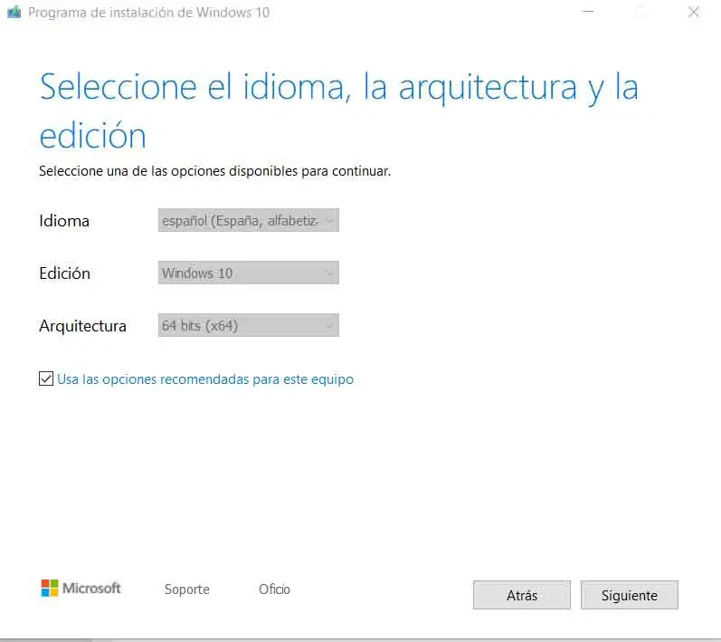 De cette façon, il convient de mentionner que cette version fonctionne exactement de la même manière que les précédentes, donc, une fois l’outil Microsoft susmentionné téléchargé et installé , nous n’aurons plus qu’à compléter l’assistant qui apparaît à l’écran et configurer le processus de téléchargement . Nous trouvons ici la possibilité de mettre à jour directement la version de Windows que nous avons installée, ou de télécharger l’ ISO ou une version installable sur un périphérique USB , le tout après avoir spécifié des aspects tels que la langue ou l’architecture du système d’exploitation.