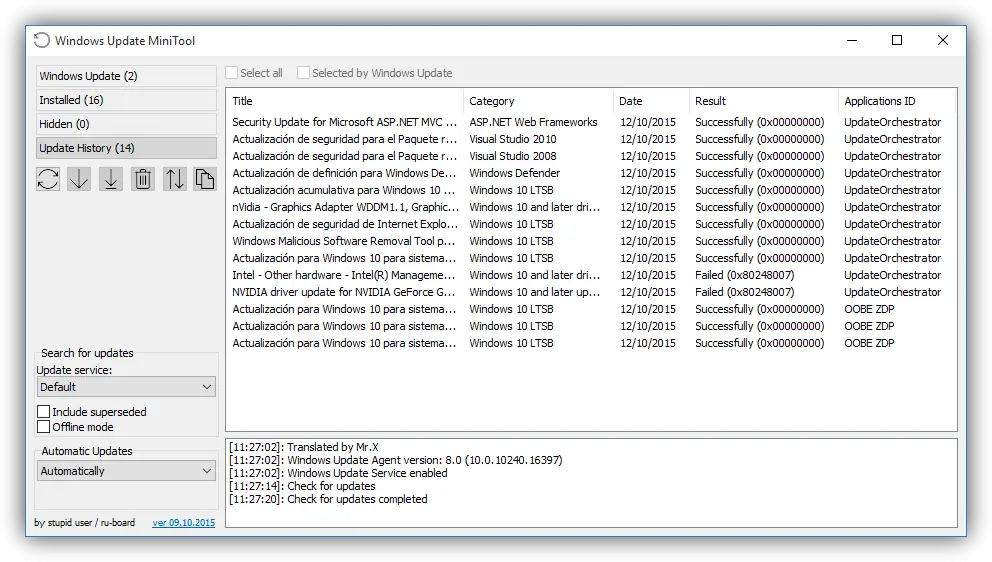 Comme l’indiquent les développeurs, cet outil ne télécharge pas les mises à jour et ne les enregistre pas sur l’ordinateur, mais tous ses paramètres et actions sont effectués via WU, c’est-à-dire que Windows Update MiniTool est une interface graphique alternative à celle de Windows.