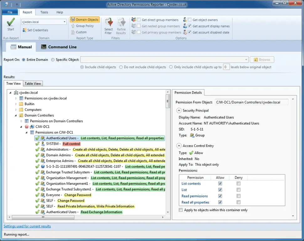 Certaines des fonctionnalités les plus remarquables de l’outil incluent son système de filtrage hautement personnalisable qui permet de trouver facilement l’utilisateur ou le groupe de votre choix. Vous pouvez, par exemple, filtrer les résultats en fonction d’un large éventail d’attributs, tels que le nom du compte, le type de compte, le domaine, la nature des autorisations, les autorisations héritées et l’état du compte, juste pour nommer Certains. Les résultats peuvent être affichés sous forme d’arborescence ou de tableau. Différentes autorisations sont mises en évidence dans différentes couleurs, ce qui vous permet d’identifier facilement les informations dont vous avez besoin. Vous pouvez facilement identifier les autorisations frauduleuses qui enfreignent vos normes et politiques.