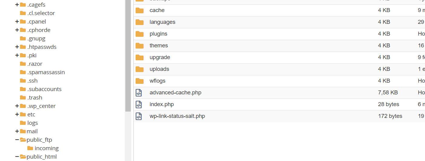 Dans les répertoires principaux, nous pouvons voir plus de dossiers. C’est là que tout le contenu du site est stocké afin qu’il puisse fonctionner correctement. Utilisateurs, mots de passe, modules complémentaires installés, le panneau de contrôle lui-même… Bref, tout ce qui permet aux visiteurs de voir correctement la page et de la parcourir sans problème.