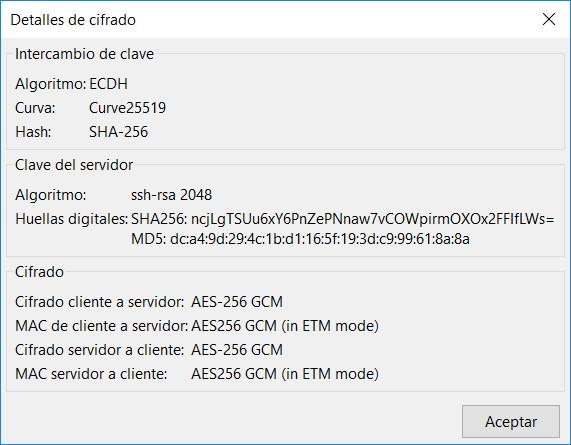 Dans le cas de FTPES, il faut créer une Public Key Infrastructure (PKI) intégrant le certificat de l’AC (Certification Authority) et sa clé privée correspondante, cependant, en SSH ce n’est pas nécessaire, et cela facilite grandement la configuration. Comme vous l’avez vu dans les captures d’écran du client, la principale différence entre eux est la façon dont nous établissons la connexion sécurisée, mais une fois la connexion établie, le transfert de données se fait avec AES-256-GCM dans les deux. Une autre différence entre FTPES et SFTP est qu’avec le protocole FTPES nous devrons ouvrir les ports FTP PASV pour que la communication fonctionne correctement, cependant, avec SFTP nous n’aurons qu’à ouvrir un port, celui correspondant à SSH.