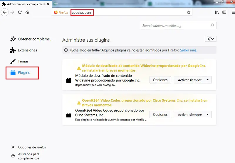 Dans cet endroit, vous pouvez vérifier ceux que vous avez installés . Bien que ceux-ci ne soient pas mauvais, puisqu’ils sont connus sous le nom d’addons, l’une des fonctionnalités les plus importantes et les plus utiles de Firefox, quand ils sont en excès, ils le font fonctionner moins normalement.
