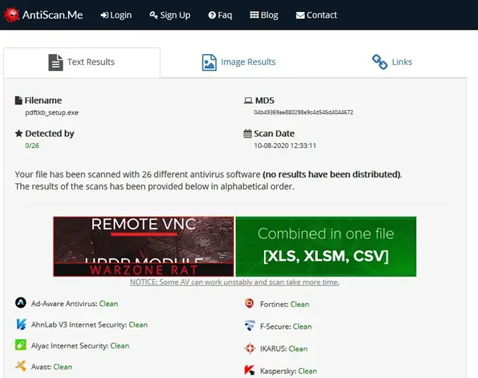Avec un fonctionnement similaire à celui de Virus Total et MetaDefender, AntScan est un antivirus en ligne qui fonctionne entièrement depuis le navigateur et utilise 26 moteurs antivirus différents pour effectuer une analyse exhaustive de tout fichier sur votre ordinateur que nous souhaitons analyser.