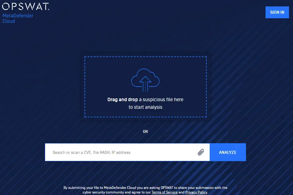 MetaDefender est un autre antivirus en ligne bien connu pour sa fiabilité et ses bons résultats, car il utilise plus de 35 moteurs antivirus pour reconnaître, grâce à une analyse, les risques potentiels et les fichiers malveillants qui se trouvent sur votre ordinateur, votre adresse IP ou un lien fourni vers votre propre plate-forme.
